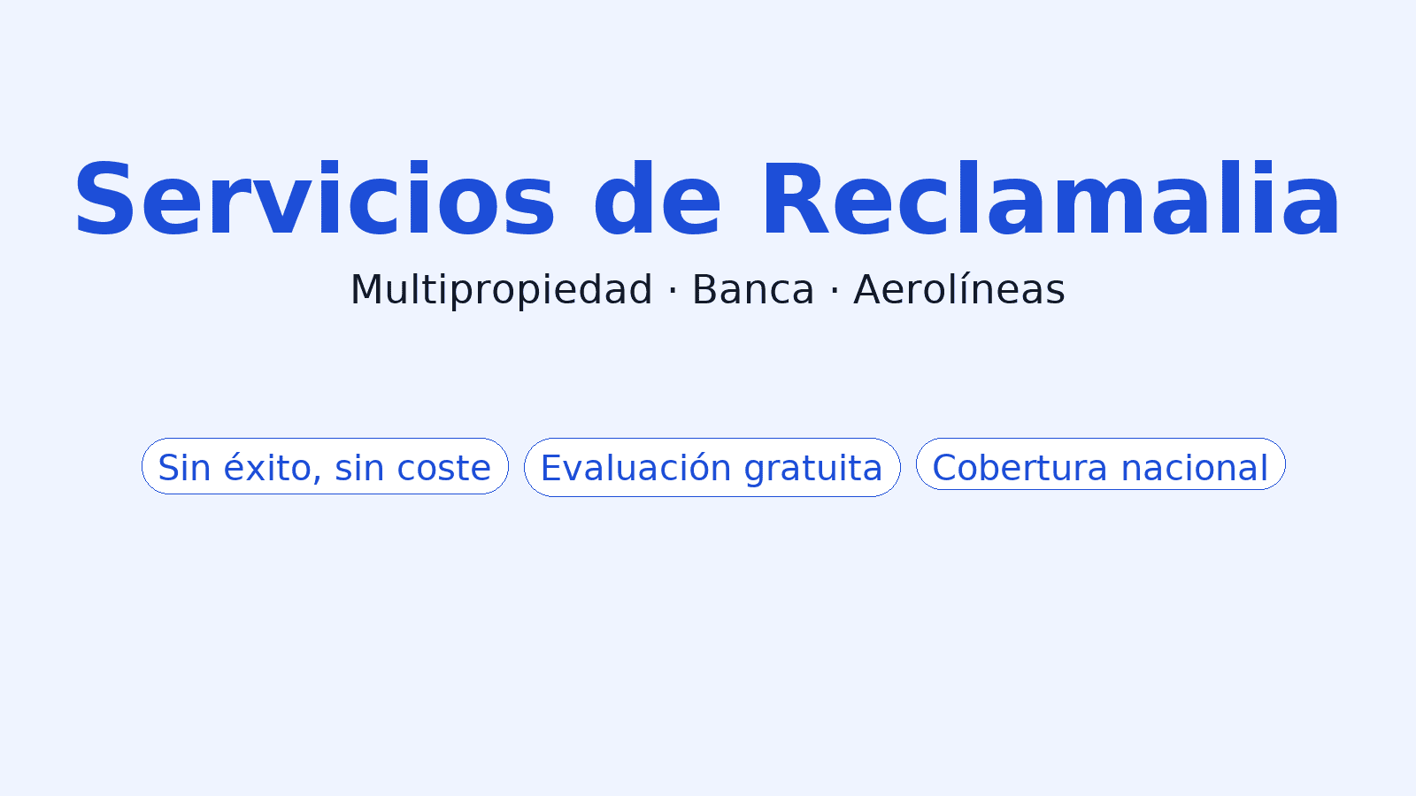 Defensa del consumidor: multipropiedad, banca, aerolíneas, vehículos e inmobiliaria. Modelo sin éxito, sin coste en banca, aerolíneas y multipropiedad.